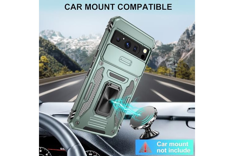 for Google Pixel 8 Pro Case with Screen Protector [2 Pack] and Slide Camera Cover,Military Grade Shockproof,Armour Phone Cover with Ring Kickstand for Pixel 8 Pro,Alpine Green