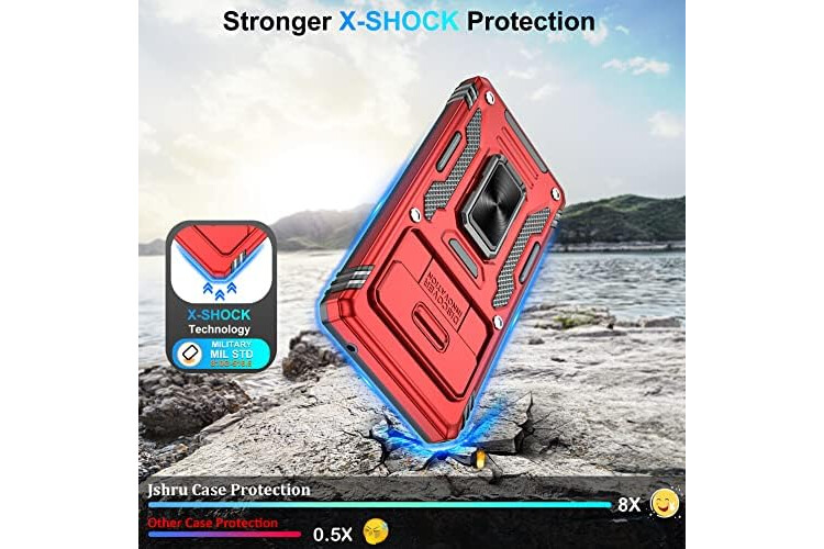for Google Pixel 7A Case with [Upgraded] Slide Camera Cover,Military Grade Shockproof Pixel 7A Case with Ring Kickstand, Anti-Scratch Armour Phone Cover for Google Pixel 7A,Red