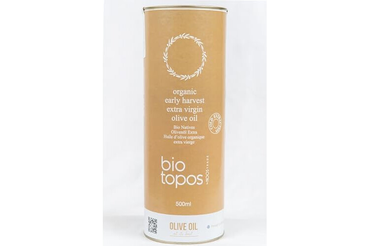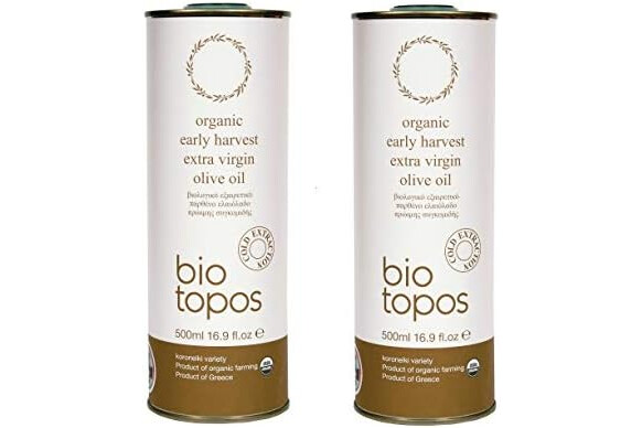 Biotopos November 2025 Early Harvest Greek Extra Virgin Cold Pressed Olive Oil, Premium Quality, Polyphenols,100% green Koroneiki, Certified Organic evoo Kalamata 500ml Tins (2 pack)