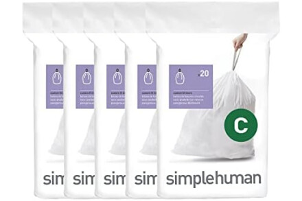 simplehuman Code C 100 Liners, 50% Recycled Custom Fit Bin Bags in Dispenser Packs, Durable Drawstring Tie Handle, 10-12L, White