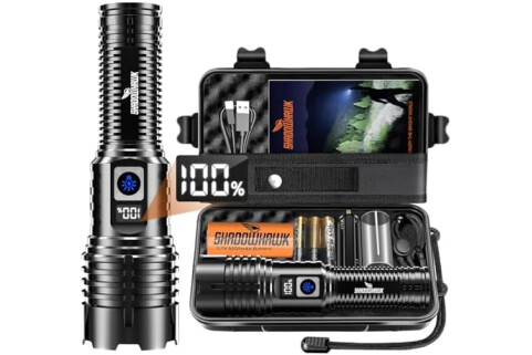 Shadowhawk Torches LED Super Bright Rechargeable, Flashlight 500000L XHM77.2 Torches Battery Powered, Adjustable Focus Powerful Flash Light, USB Hand Torch for Dog Walking/Camping/Emergency/Gift