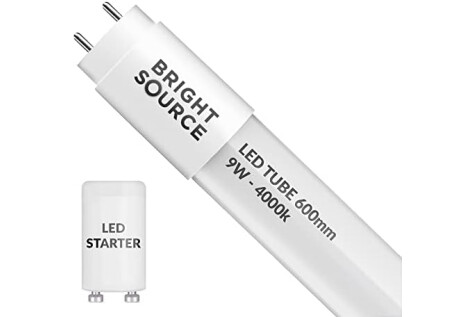 Bright Source 2ft (589mm) 9w LED T8 Tube, 810lm, 4000K Cool White, Replacement for 18w T8 Fluorescent, Starter Included - Direct Mains or for use with Switch Start Fitting with Magnetic Ballast