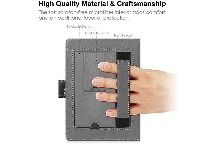 🍑【2 Foldable Stand】: 2 adjustable stands support your device with multi-angles, brings you the best reading experience. Elastic hand strap design provides a comfortable and safe one-handed reading experience.