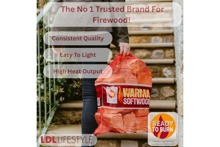 Softwood Firewood Logs 25L Kiln Dried Logs - Ready to Burn Easy to Light Density - 1 x 25 Litre Net Soft Wood for Outdoor Open Fire Pits Wood Burners Coal Stoves Log Burners