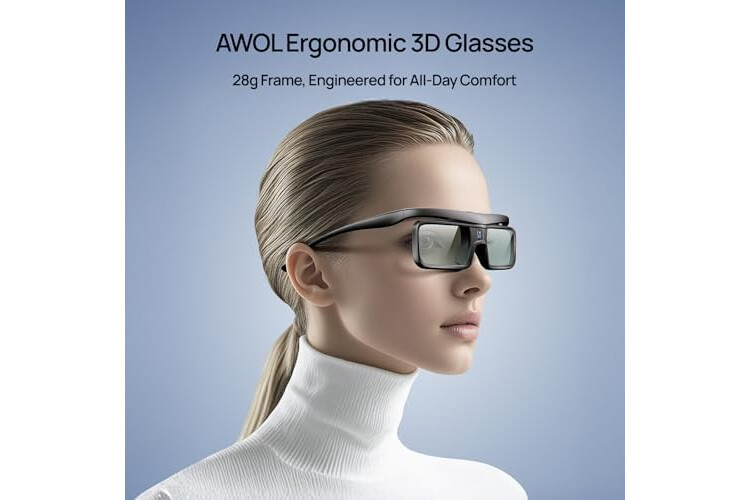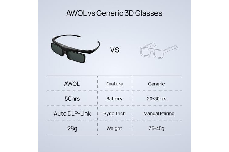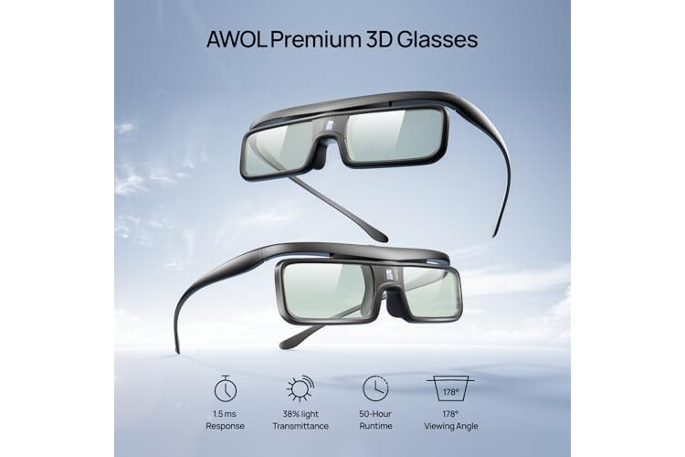 AWOL VISION DLP Link 3D Glasses, Rechargeable Active Shutter Eyewear compatiable with AWOL VISION LTV-2500, LTV-3500, Vanish TV & Other DLP-Link 3D projectors