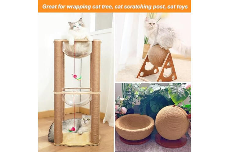 MULTI-PURPOSE - This natural jute rope is perfect for DIY cat scratching post, wrapping around the legs of furniture, wall hangings and other craft decorative projects