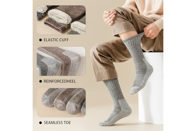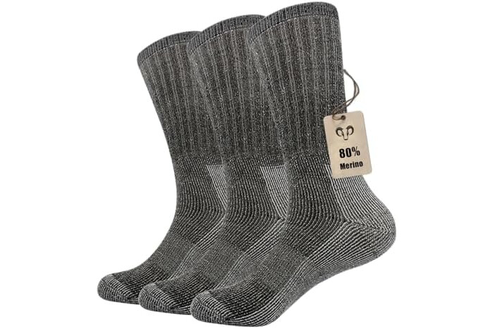 Vihir 3 Pack Men's Thermal 80% Merino Wool Hiking Calf Tube Socks Crew Sock for Skiing, Trekking, Hiking 5.5-8/7.5-10.5