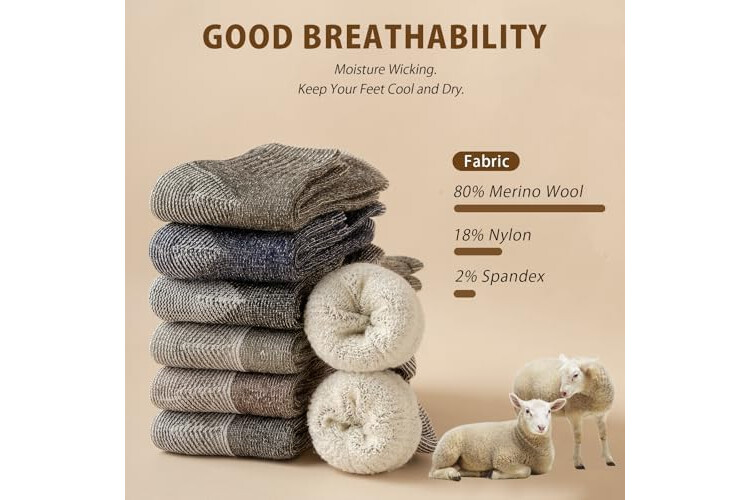 Vihir 3 Pack Men's Thermal 80% Merino Wool Hiking Calf Tube Socks Crew Sock for Skiing, Trekking, Hiking 5.5-8/7.5-10.5