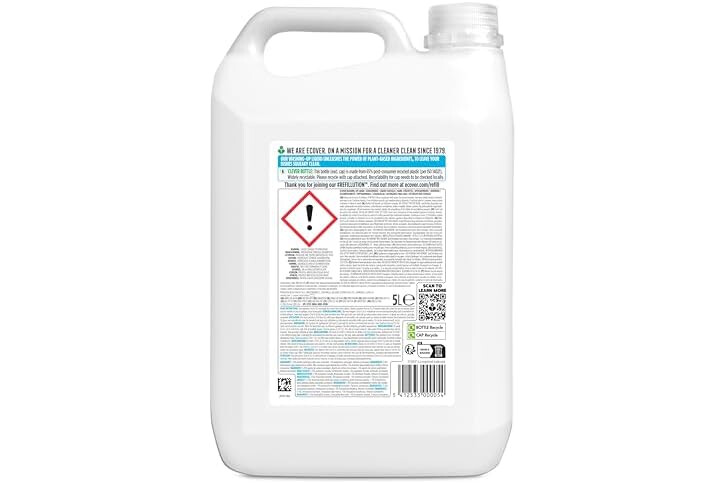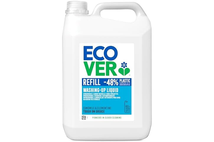 Ecover Washing Up Liquid Refill, Washing Up Soap, Tough on Grease and Grime, Fresh Camomile & Clementine Scent, 1 x 5L