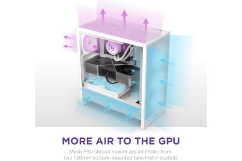 EXCEPTIONAL GPU COOLING - The PSU shroud is perforated on the side and bottom, enabling optimal air intake from two 120mm fans (not included).