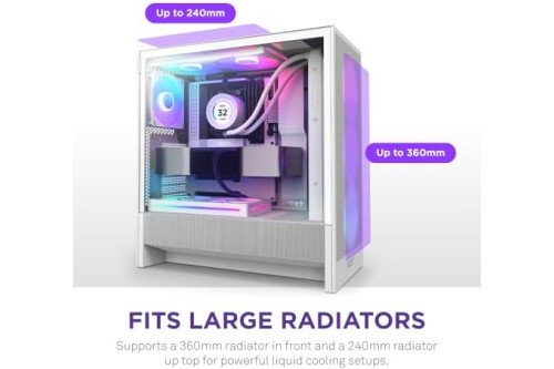 LARGE RADIATOR SUPPORT - Supports up to a 360mm radiator in front and a 240mm radiator up top for powerful liquid cooling potential.