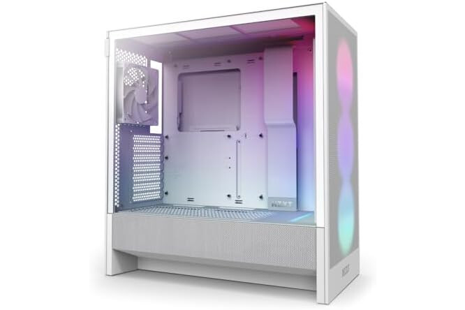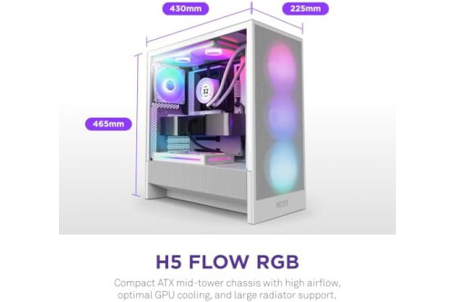 NZXT H5 Flow RGB - Compact ATX Mid-Tower PC Gaming Case - High Airflow - F360 RGB Core (CV) Included - 360mm Front & 240mm Top Radiator Support - Cable Management - Tempered Glass - White