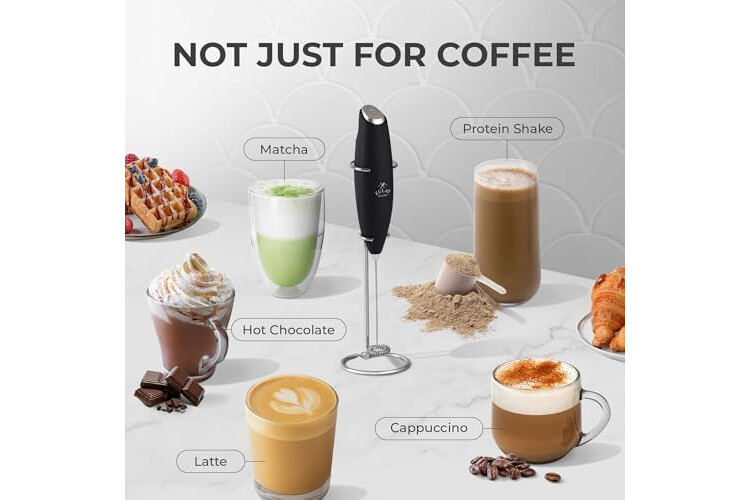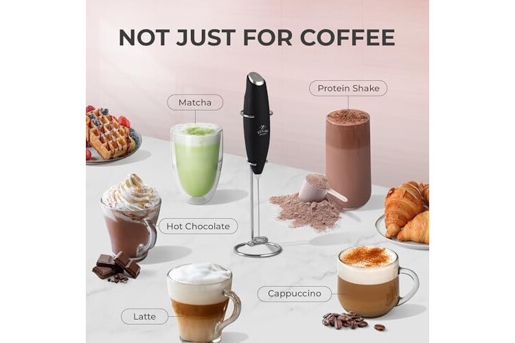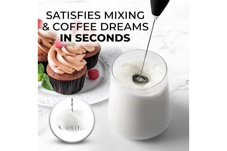 Zulay Kitchen Powerful Milk Frother Wand - Ultra Fast Handheld Drink Mixer - Electric Whisk Foam Maker for Coffee, Lattes, Cappuccino, Frappe, Matcha, Hot Chocolate & Coffee Creamer - Milk Boss Black