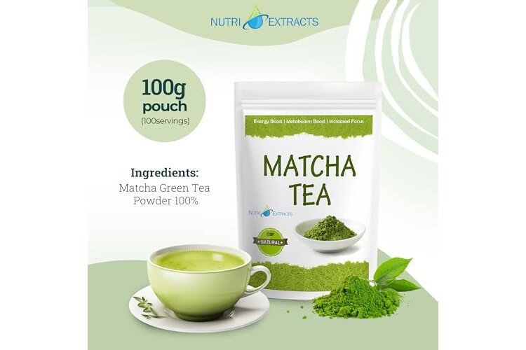 NutriExtracts Matcha Green Tea Powder 100g, Our Original Ceremonial Grade - Ideal for Matcha Lattes, Smoothies, Baking – Vegan & Antioxidant-Rich