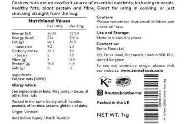 • Borna Foods Cashew Whole Cashew Nuts, 1kg