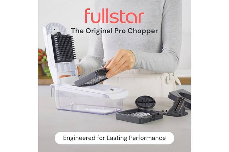 • 4 Interchangeable Blades - Effortlessly julienne, chop and slice vegetables with Fullstar's cooking gadgets. Built-in chop lid lets you cut foods directly into the 1.2L collection tray without the mess of a knife and cutting board. Storage container lets you hold prepared vegetables in the Fullstar Vegetable Cutter until you are ready to begin cooking. This 7-piece set can make great cooking gifts for women and men.
