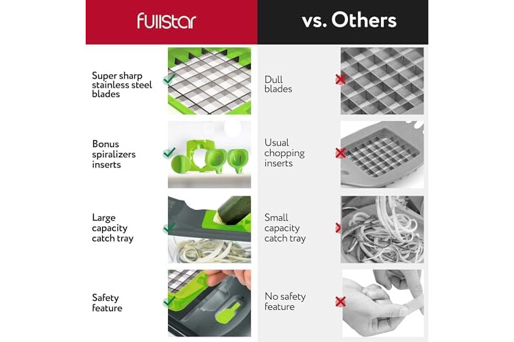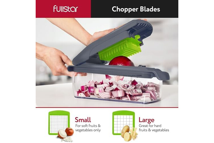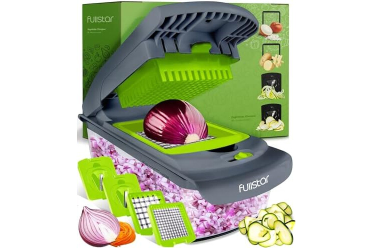Fullstar 4-in-1 Grey/Green Vegetable Cutter - Manual Veggie Onion Salad Food Chopper - Potato Chipper - Veg Chopper and Dicer - Kitchen Tools & Gadgets