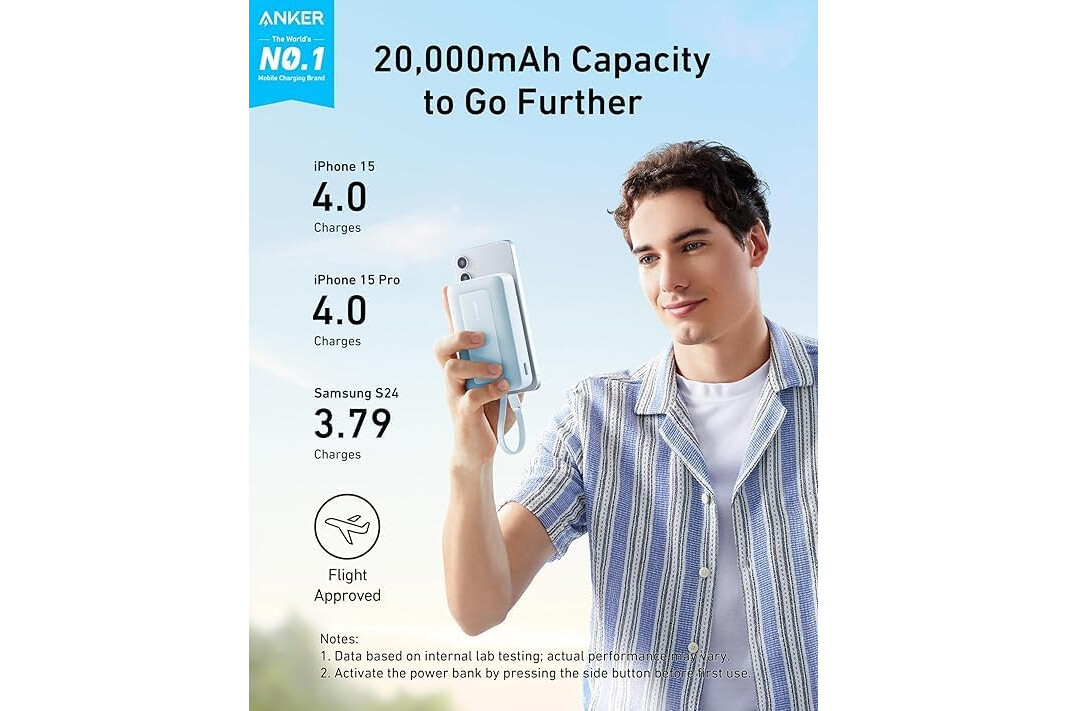 Go Beyond with 20,000mAh: Carry the power you need to charge your iPhone 15 up to 4 times or your Samsung S24 3.79 times, perfect for extended travel and long days.
