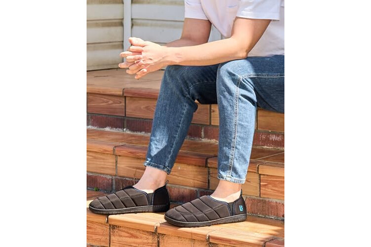 LongBay Men's Memory Foam Slippers with Warm Coral-Fleece Lining Non-Slip Indoor Outdoor House Shoes