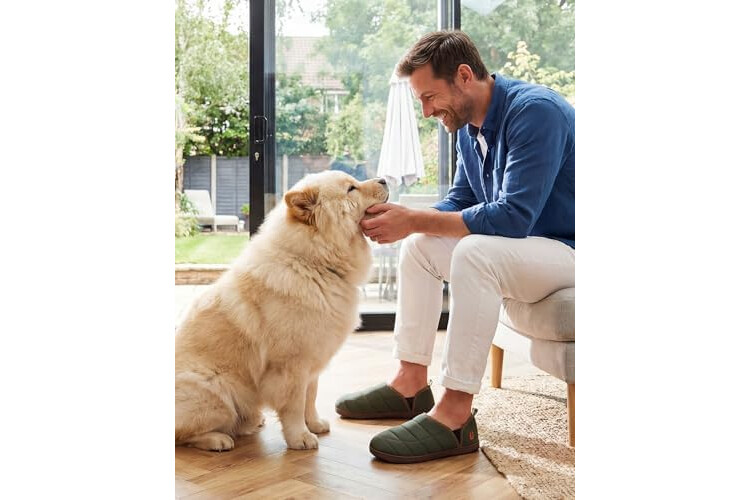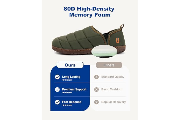 LongBay Men's Memory Foam Slippers with Warm Coral-Fleece Lining Non-Slip Indoor Outdoor House Shoes