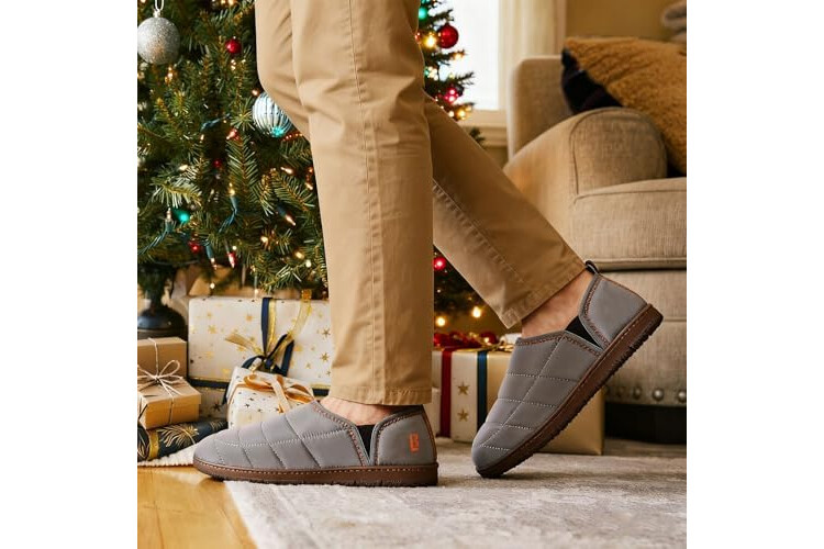 LongBay Men's Memory Foam Slippers with Warm Coral-Fleece Lining Non-Slip Indoor Outdoor House Shoes