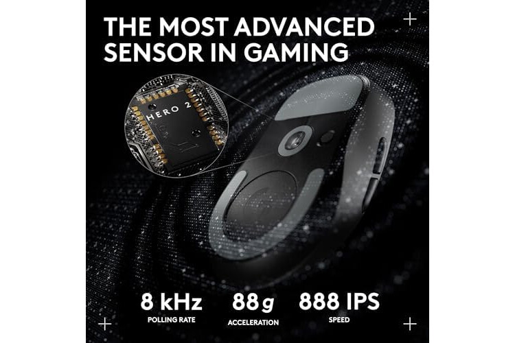 Pro-Precision: The most advanced sensor in gaming; The HERO 2 sensor has sub micron tracking at up to 44K DPI across full range of motion, and up to 888 IPS/ 88 g-force acceleration (1)