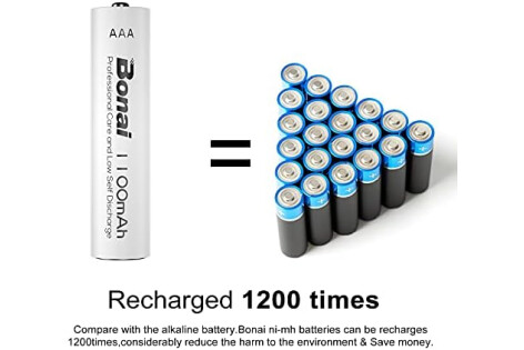 BONAI NI-MH AAA Rechargeable Batteries High Capacity 1100mah,1200 Cycles Recharge AAA Batteries,Pack of 24