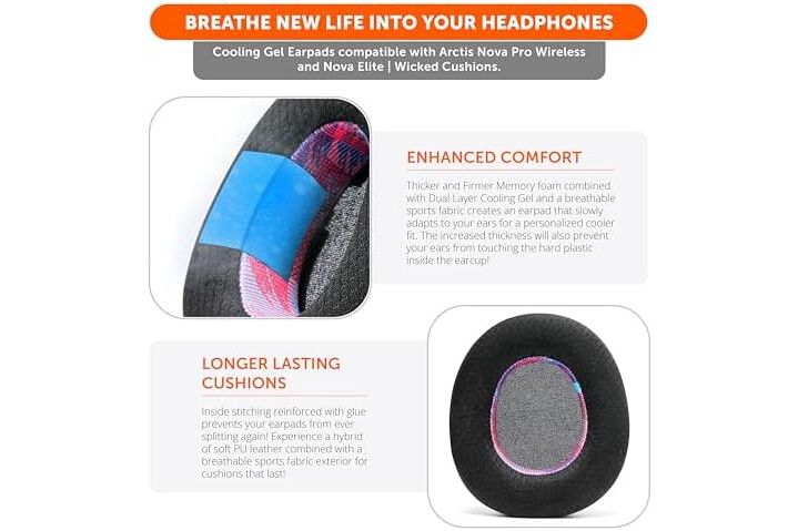 Experience the FreeZe: Do your ears get hot after several hours of using your headphones? WC FreeZe cooling gel ear pads compatible with Arctis Nova Pro Wireless and Nova Elite keep your ears cool for longer periods of time. A combination of Dual Layer cooling gel (interior layer, top layer), and a breathable hybrid of sports fabric and leather help you get through those long listening sessions.