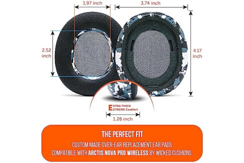 WC Freeze Nova Pro Wireless - Cooling Gel Earpads for Arctis Nova Pro Wireless & Nova Elite (Doesn’t Fit Other Models), by Wicked Cushions, Extra Thick & Comfortable | Snow Camo