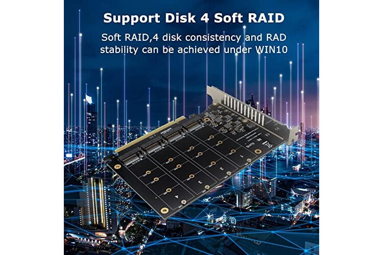 [PCIE Split/RAID Function]: Please Make Sure Your Motherboard Should Supports PCIE Split or PCIE RAID Function, and Supports PCIE 3.0, 4.0 Transmission Protocol, If your computer supports into the BIOS, set the PCI-E for X4 X4 X4 X4, the card will be able to use, please confirm whether the motherboard supports the function of PCI-E split before you buy! If the motherboard does not support splitting, this card is not compatible.