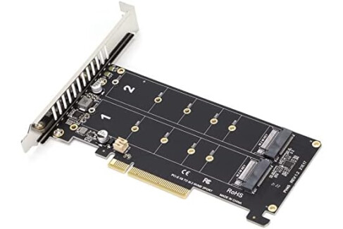 Dual M.2 NVMe SSD to PCIE Adapter Card X8 M Key Hard Drive Converter Reader Expansion Card supports PCIE Split Function PCIE X4X4X4 or 4X4 Mode(ph45)