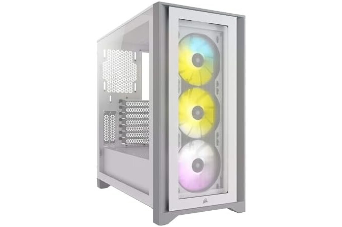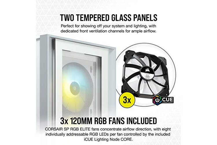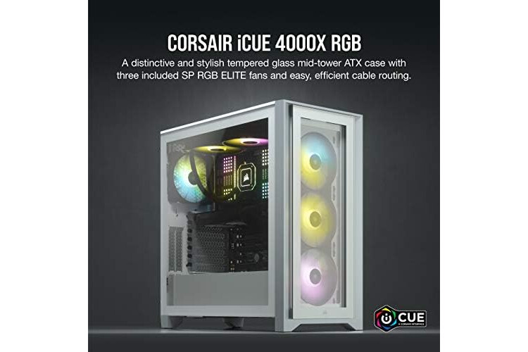 Corsair ICUE 4000X RGB Tempered Glass Mid-Tower ATX Case (Tempered Glass Side And Front Panels, RapidRoute Cable Management System, Spacious Interior, Three Included 120 Mm RGB Fans) White