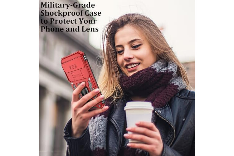 for Google Pixel 9 Pro XL Case with 2 Pack Screen Protector,Shockproof Protective Case with Slide Camera Cover,Ring Stand Phone Cover for Google Pixel 9 Pro XL,Red