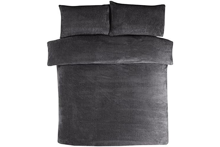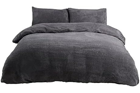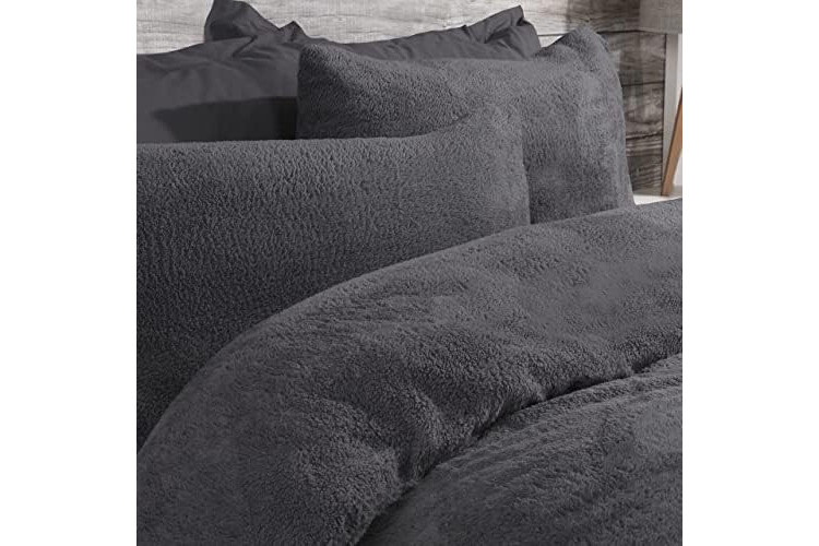 Sleepdown Teddy Fleece Duvet Cover Quilt Bedding Set with Pillow Cases Thermal Warm Cosy Super Soft - King - Charcoal, 5056242736356