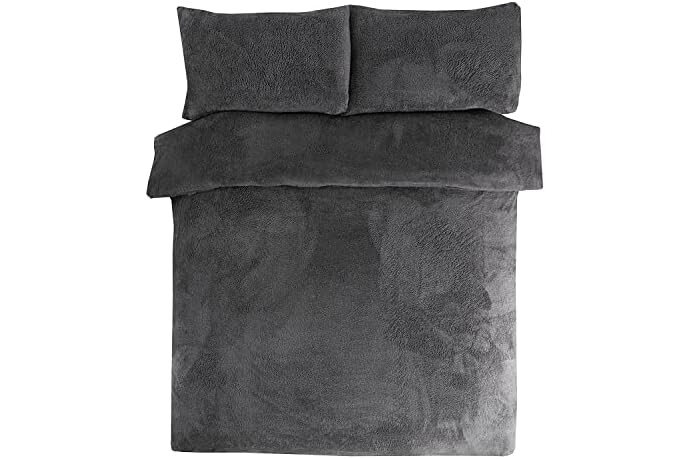 Sleepdown Teddy Fleece Duvet Cover Quilt Bedding Set with Pillow Case Thermal Warm Cosy Super Soft - Single - Charcoal