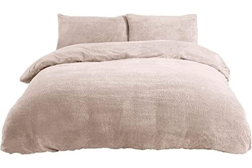Sleepdown Teddy Fleece Duvet Cover Quilt Bedding Set with Pillow Cases Thermal Warm Cosy Super Soft, Super King, Natural Ivory