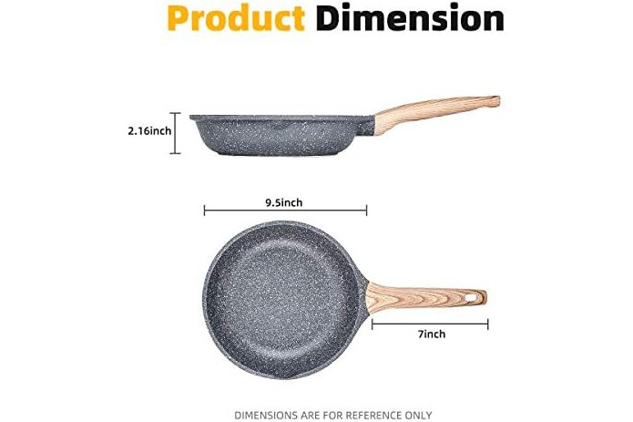 🌹【CLASSY & ELEGANT DESIGN】 - The stone frying pans’ streamlined design integrated with ergonomic wood grain handle adds to its comfort, convenience and slip resistance during cooking.