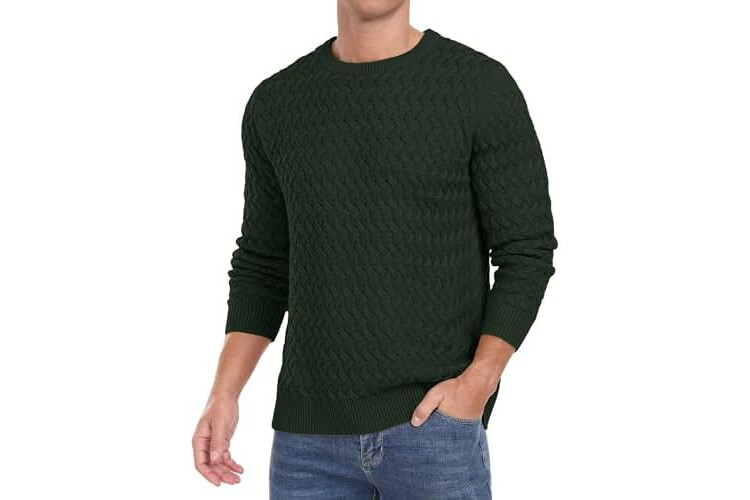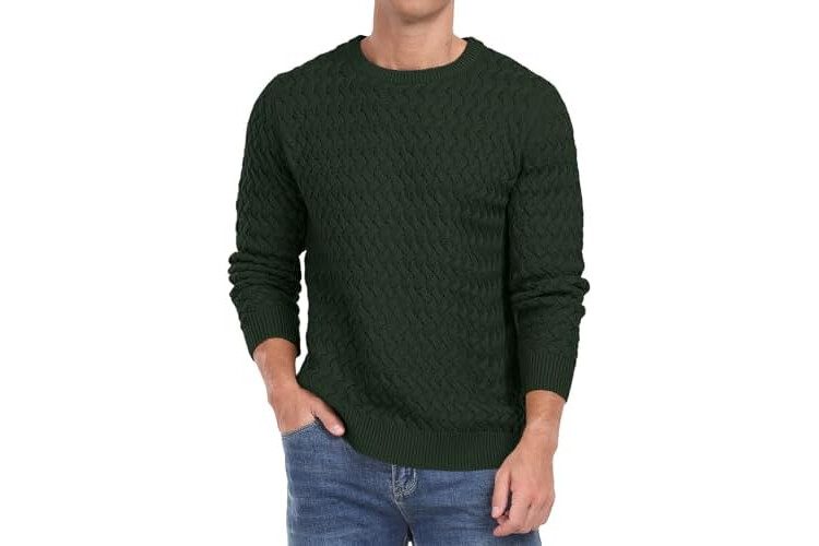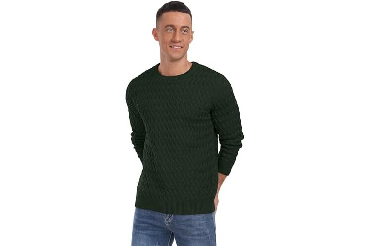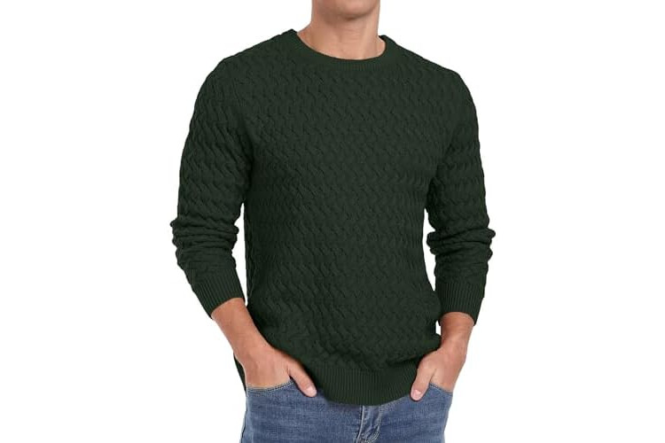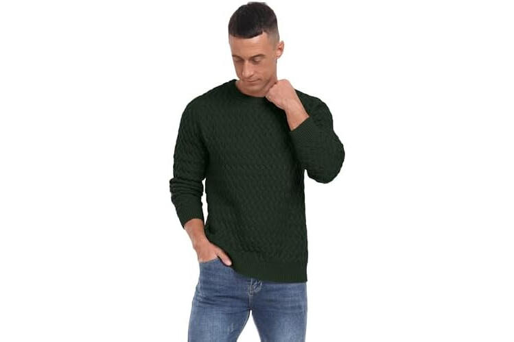 QIXING Men's Jumper Crew Neck Cable Knit Jumpers for Men UK Long Sleeve Casual Twist Patterned Pullover Sweater