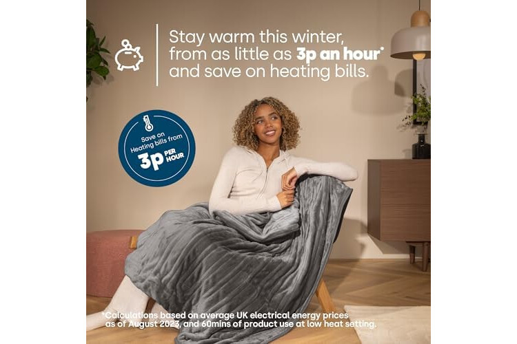 160 x 130 CM FULL COVERAGE SIZE: Generously sized heated throw designed for single or dual use, distributing warmth evenly across the blanket surface.
