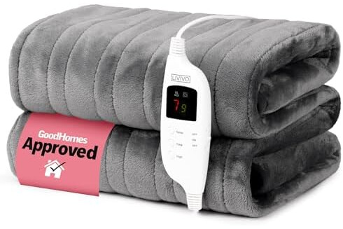 LIVIVO Electric Heated Blanket, 160x130cm – Ultra Soft Fleece Electric Over Blanket Throw with 9 Heat Settings, Timer, Auto Shut-Off – Energy Efficient & Machine Washable - Grey