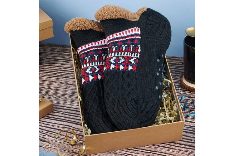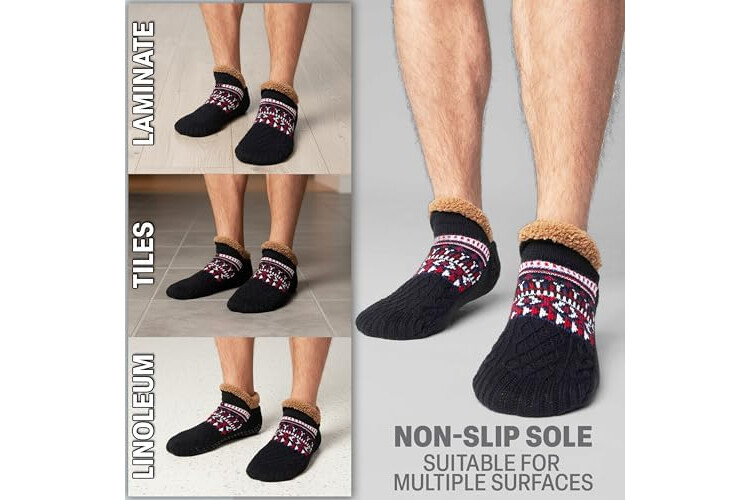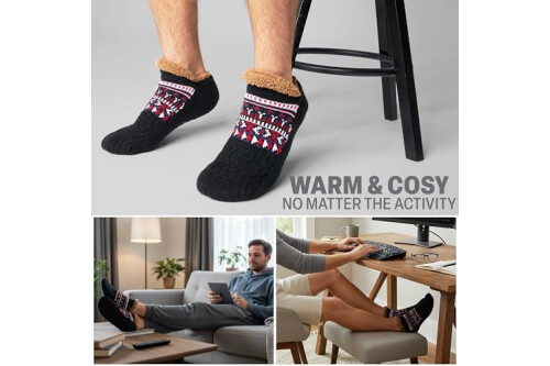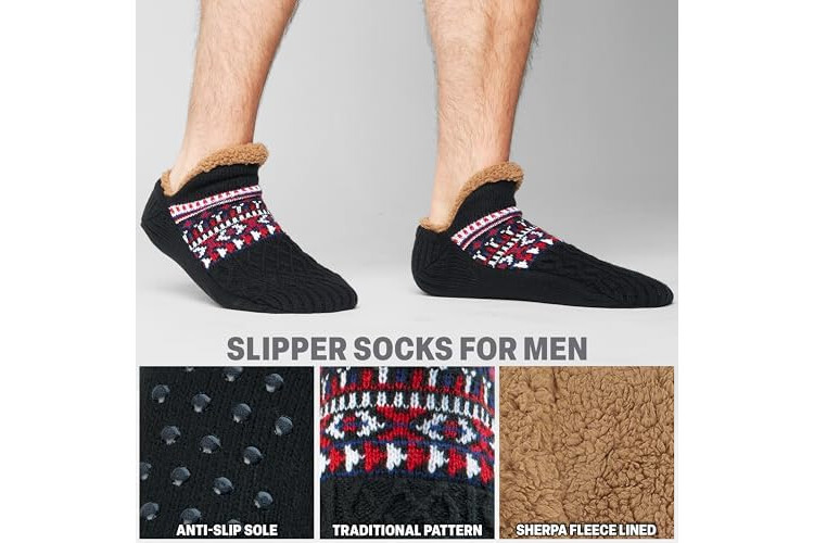 CityComfort Slipper Socks for Men & Teens Size 6–9.5, Cozy Non Slip Socks with Sherpa Lining and Grip, Warm Gift for Him