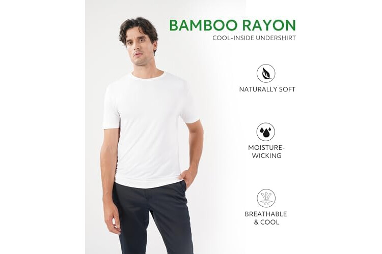 DAVID ARCHY Men's Cooling Undershirt Rayon Made from Bamboo T Shirts Moisture-Wicking Heather Tees for Men, 3-Pack