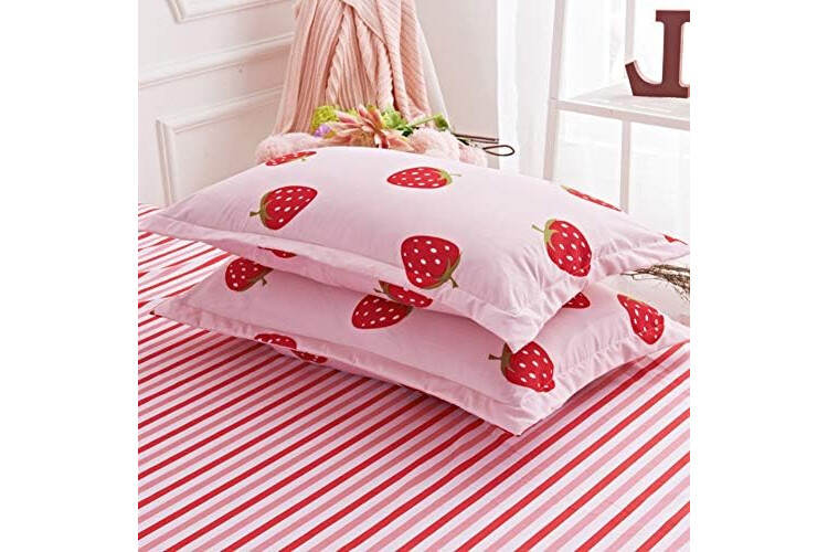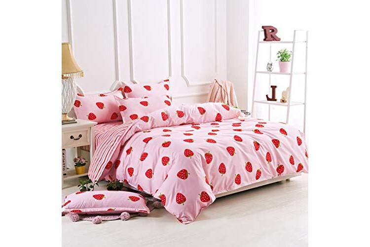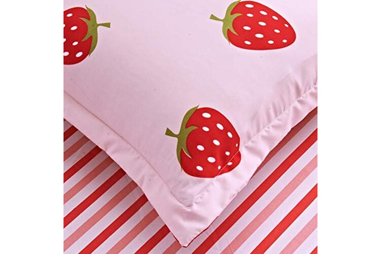 Loussiesd Strawberry Duvet Cover Set King Strawberry Printed Bedding Duvet Cover for Kids Teens Girls Quilt Cover Fruit Theme Comforter Cover Cute Warm Sweet Duvet Cover Soft Breathable Bed Cover