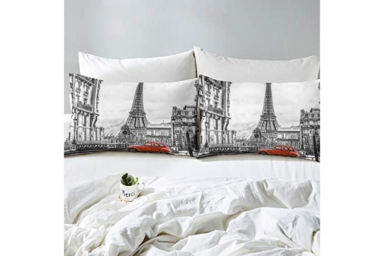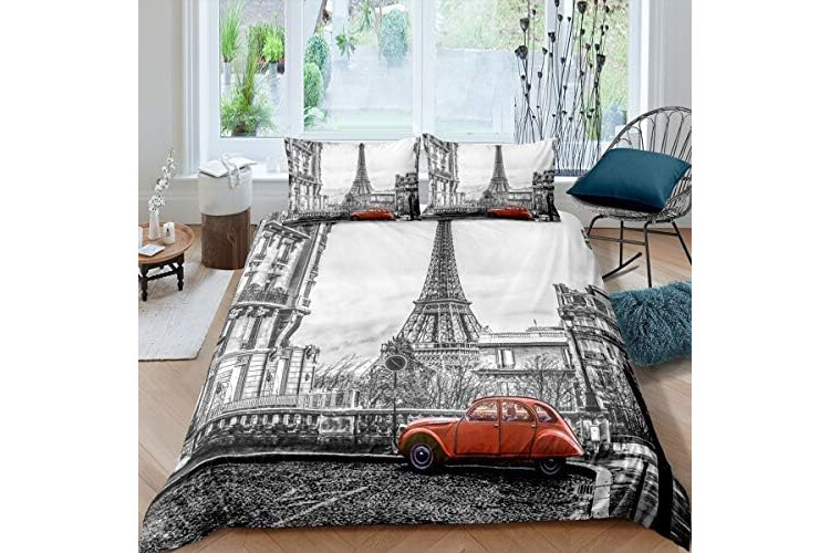 Loussiesd Modern Duvet Cover Set Single Size Decorative Microfiber Polyester Bedding Set Paris Eiffel Tower Comforter Cover Set Grey Luxury Quilt Cover with 1 Pillow Shams, Zipper, Soft 2 Pieces