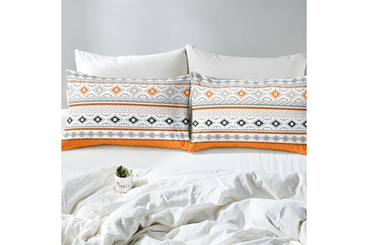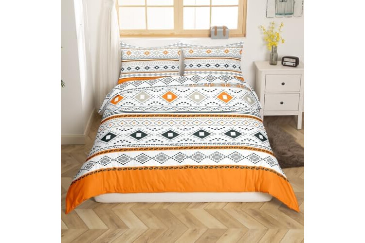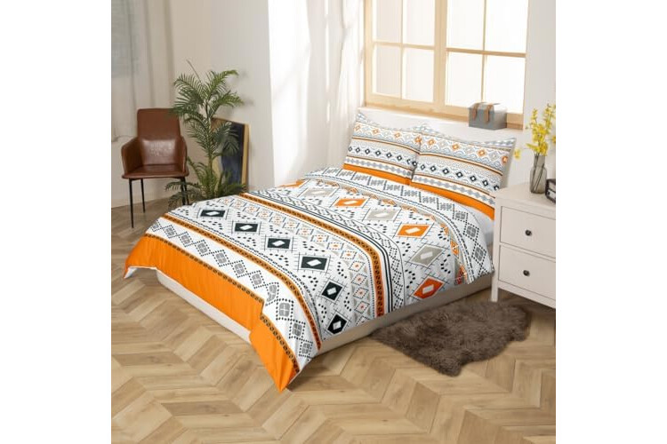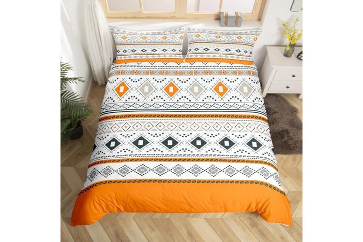 Loussiesd Boho Stripe Duvet Cover Set Bohemian Bedding Set for Boys Girls Adults Soft Reversible Gird Plaid Cube Comforter Cover Set with Zipper Closure Single Size 1 Duvet Cover with 1 Pillowcase