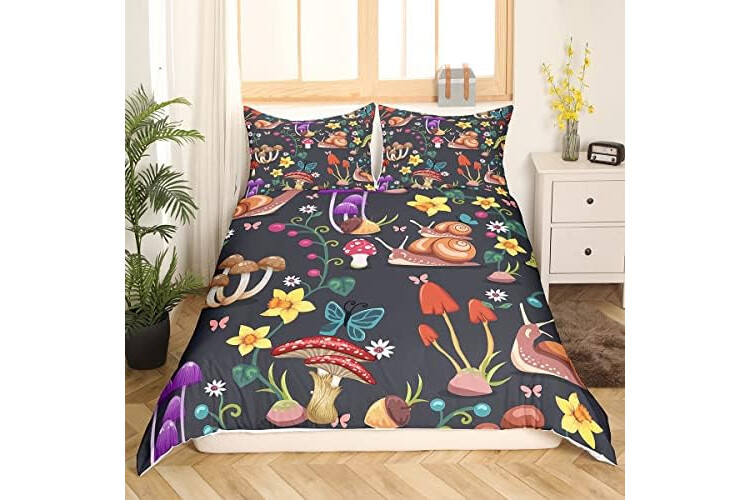 Snail Duvet Cover Animals Theme Comforter Cover Set with Zipper Ties Mushroom Rose Flower Brown Ultra Softest Garden Bedding Set for Teens Exotic Style Single Bedspread 2Pcs Bedding Set