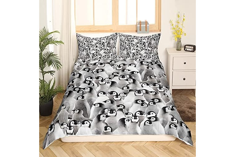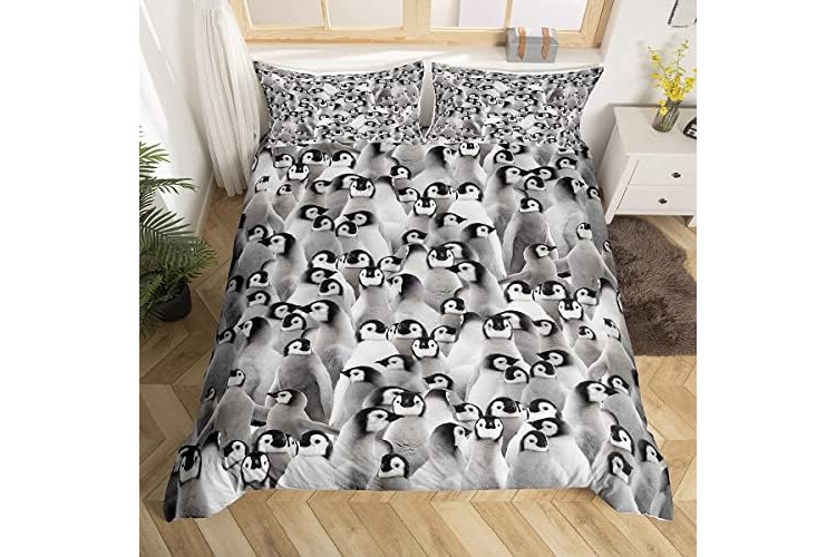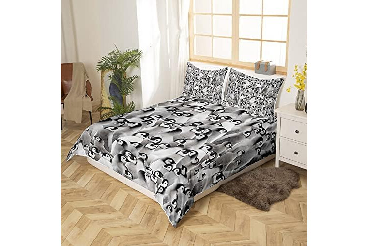 Penguin Bedding Set Kids Cute Polar Animal Comforter Cover Set for Boys Girls 3D Penguins Duvet Cover Breathable Black White Funny Wildlife Bedding & Linen Super King