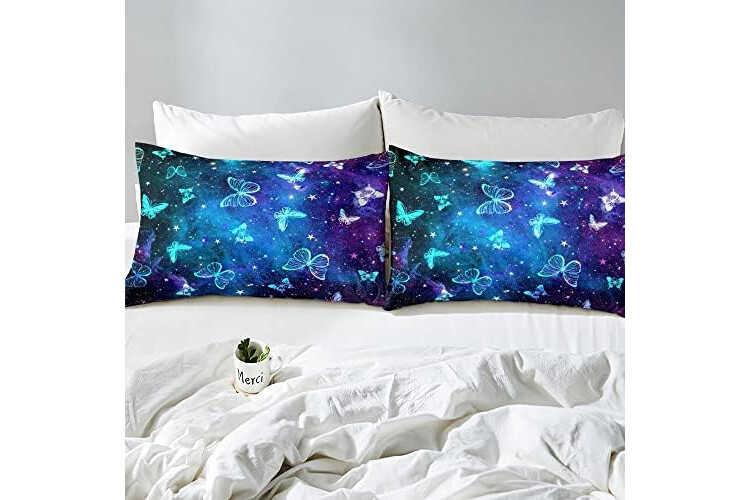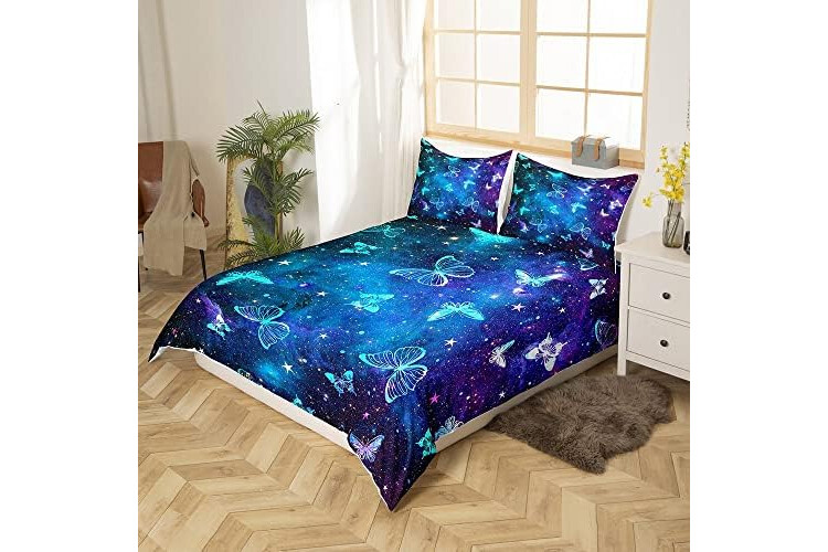 Butterfly Bedding Set Kids Universe Galaxy Butterflies Comforter Cover Set for Boys Girls Purple Blue Outer Space Duvet Cover Breathable Starry Sky Bedspread Cover Bedroom Super King