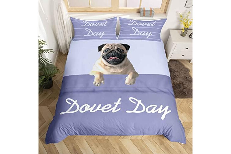 Cute Pug Dog Duvet Cover Hippie Pug Puppy Bedding Set Kawaii Animal Comforter Cover for Boys Girls Cartoon Pet Dog Bedspread Cover Double Size