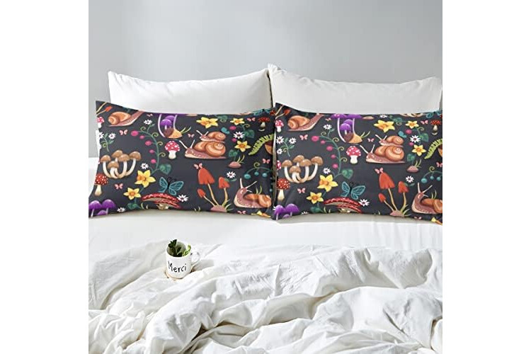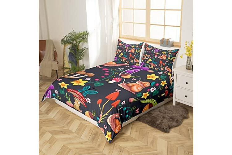 Snail Duvet Cover Animals Theme Comforter Cover Set with Zipper Ties Mushroom Rose Flower Brown Ultra Softest Garden Bedding Set for Teens Exotic Style Double Bedspread 3Pcs Bedding Set